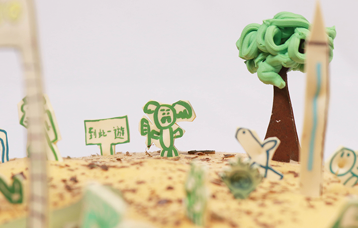 2017年開始以學校為場域,與台灣各地不同求學階段、地區、類型的學校合作,透過「校、師、生」的連結與共創,發展相關藝術駐校課程與創作計畫。延續個人作品脈絡以複合媒材轉化日常觀察的創作方法中,藉由發泡劑、奶油土等擬真材料,帶領不同學校的師生透過味覺想像轉化校園記憶,並透過班級共筆,ㄧ同編輯創作故事,重新思考感受自身與學校、地方的關係。